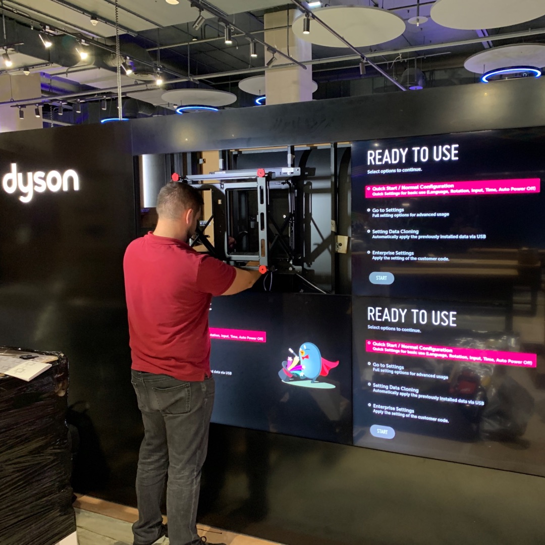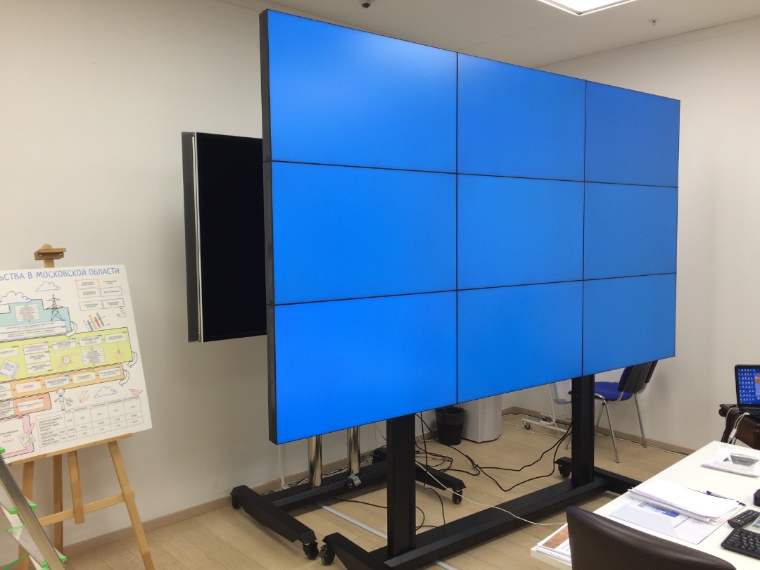 Монтаж видеостен собственными силами, без субподрядчиков. Установка крепления видеостены откидного или выдвижного push-out типа. Подключение и настройка панелей видеостен. Калибровка видеостен аппаратным колориметром или вручную.